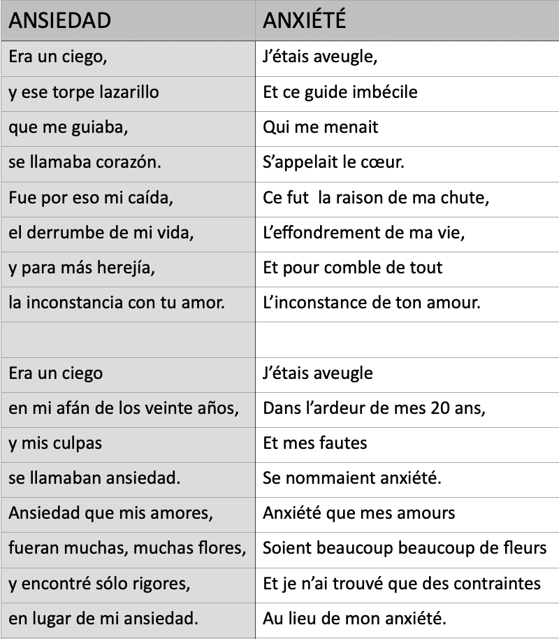 Gorrindo, figure marquante de la fin des années 1930, est reconnu pour une écriture intensément poétique et mélancolique, comme en témoignent Paciencia, Mala suerte, Gólgota ou La bruja. Le texte met en scène l’anxiété sentimentale de la jeunesse, décrite comme une errance aveugle et impulsive, qui trouve finalement son salut dans l’amour véritable. Le narrateur se présente comme un « aveugle » emporté par l’ardeur de ses vingt ans : ses fautes portent le nom d’ansiedad, c’est-à-dire une quête fébrile et désordonnée d’amours multiples, aussi intenses que décevantes. Il rêvait d’amours semblables à « beaucoup de fleurs », synonymes de beauté et d’abondance, mais n’a récolté que la rigueur, la souffrance et la désillusion. Même si les paroles du refrain (j’étais un aveugle, anxieux de réussites amoureuses) apparaissent bien sombres, ce tango est loin d’être si triste qu’il ne parait. Le tournant du récit intervient avec l’apparition d’une femme aimée, un « tú » salvateur, qui accomplit un véritable miracle : elle l’arrache au « fango », lui rend la lumière, apaise son existence et réveille en lui une foi nouvelle, faite de désirs simples, de foyer et de tranquillité. La fin du poème est même particulièrement heureuse : » Tes mains de sainte sont arrivées à temps, tes baisers de fiancée, ta voix de femme. Je me sens meilleur, plus homme que jamais, capable d’être digne, capable d’aimer ».